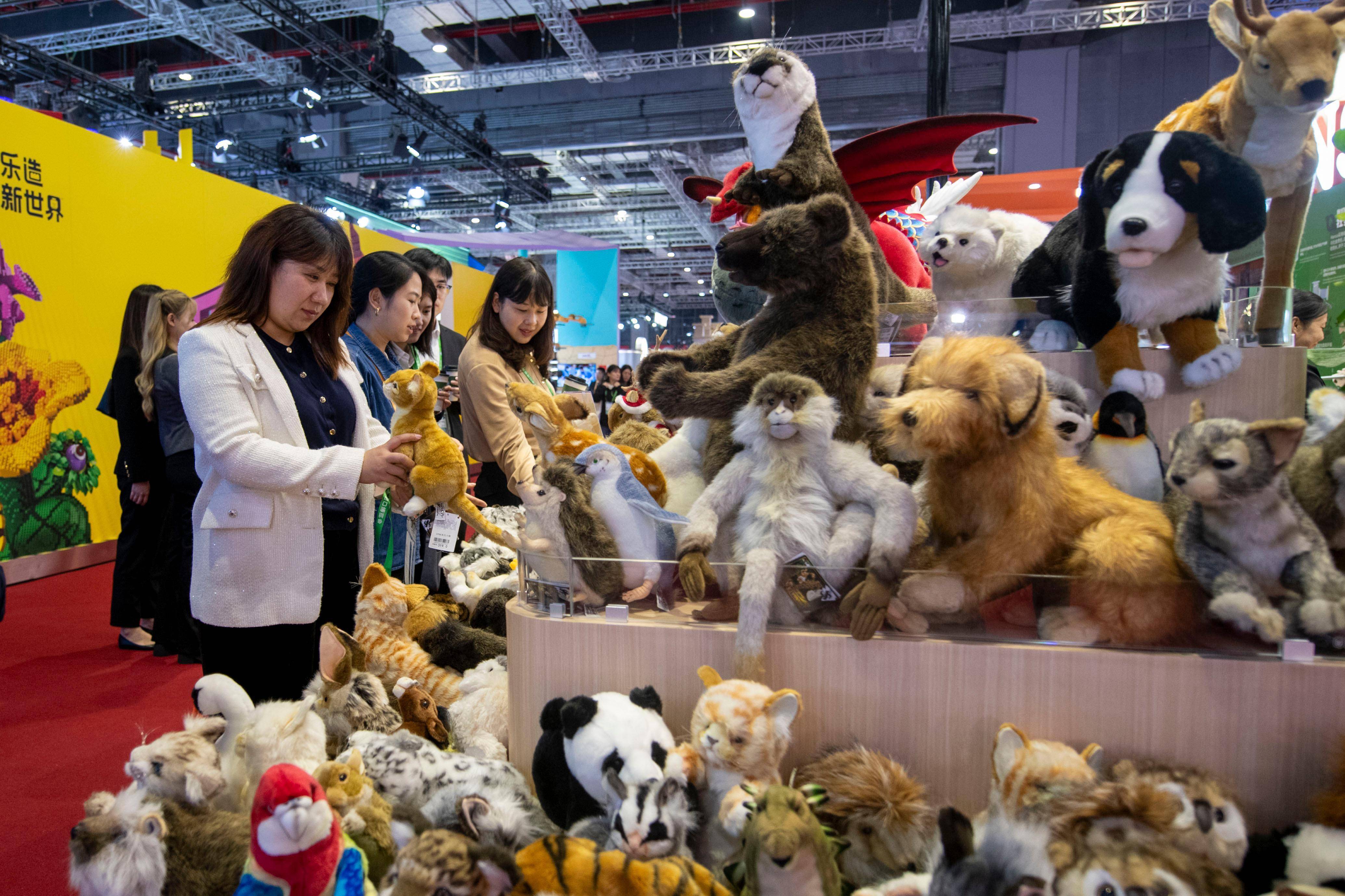 在第八届进博会消费品展区,来自澳大利亚纯手工缝制的毛绒玩具引人关注。人民网记者 翁奇羽摄