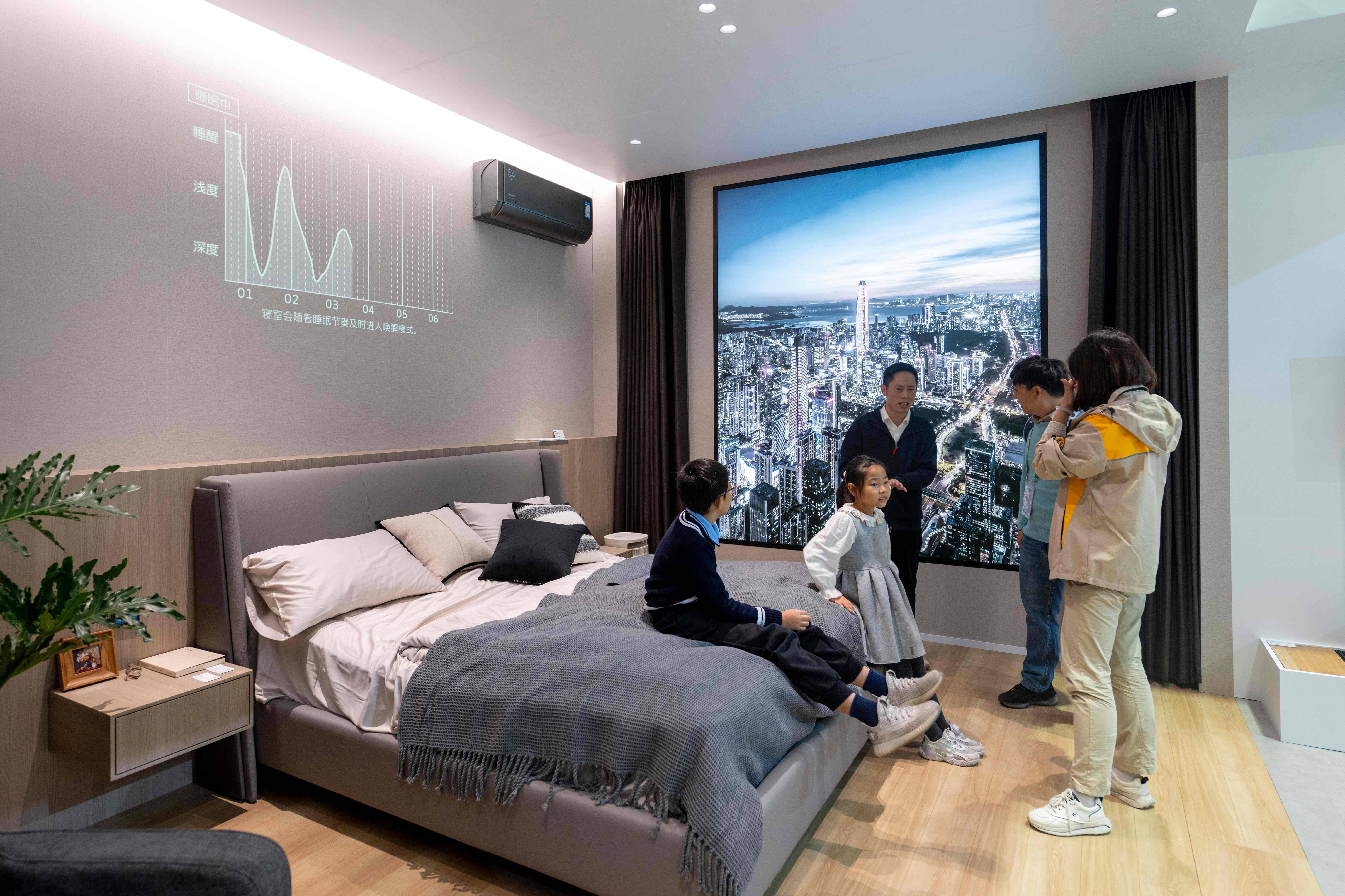 在第八届进博会消费品展区的松下展台,观众参观智能卧室。人民网记者 翁奇羽摄