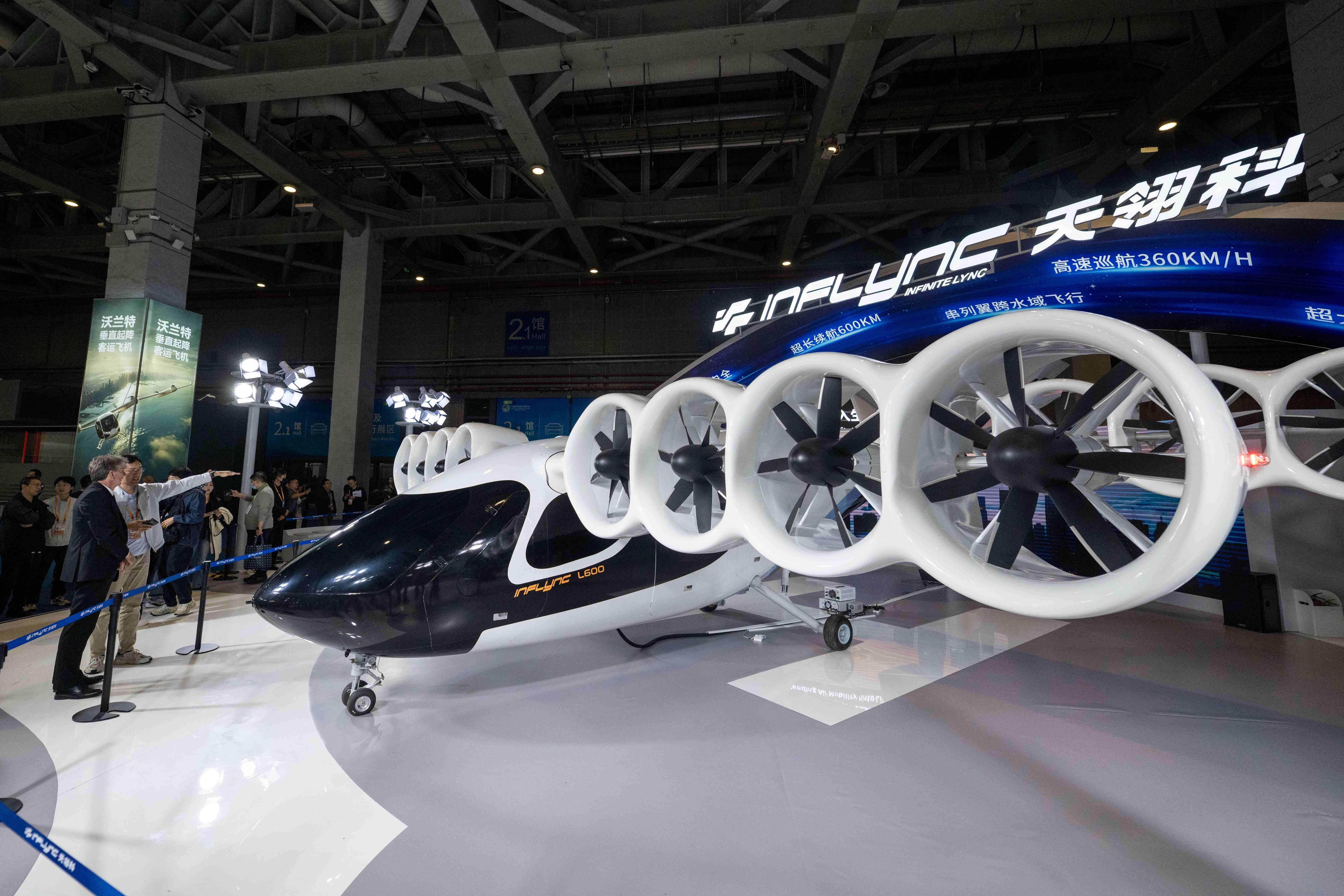 在第八届进博会汽车及智慧出行展区,观众正在参观天翎科L600空中专车。人民网记者 翁奇羽摄人民网上海11月10日电 (记者翁奇羽、方经纶)第八届中国国际进口博览会(以下简称“进博会”)的展品丰富多样,既有“高精尖”的产品,也有“小而美”的物件,让观众应接不暇。其中诸多展品,未来将走出“四叶草”场馆,进入中国市场,从展品转变为商品,为你我的美好生活增添光彩。